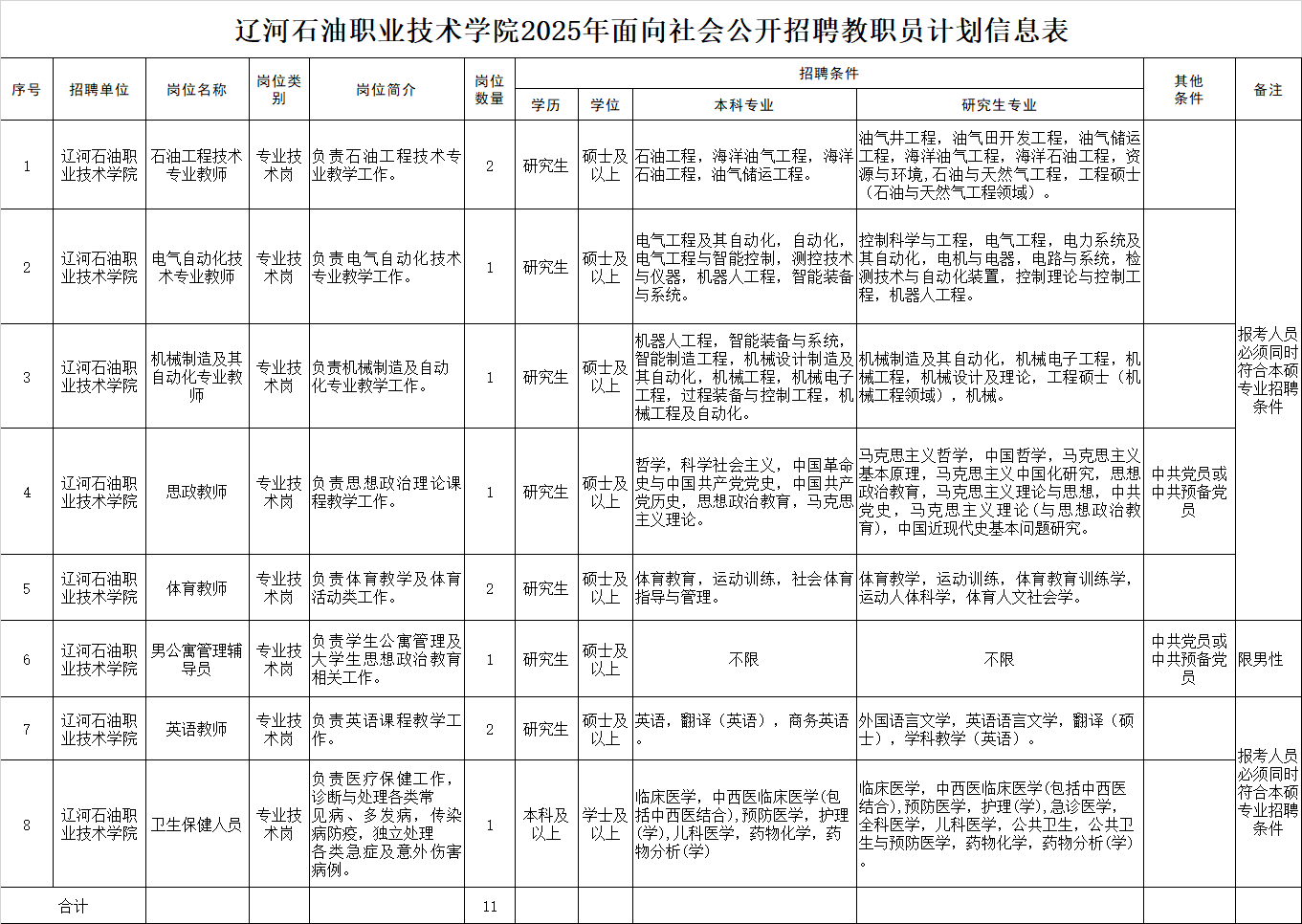 1.遼河石油職業(yè)技術(shù)學(xué)院2025年面向社會公開招聘教職員計劃信息表